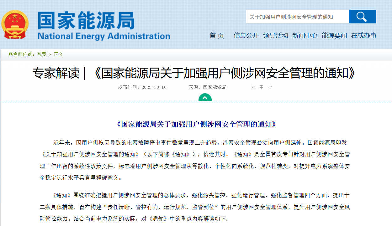 《专家解读 | 《国家能源局关于加强用户侧涉网安全管理的通知》